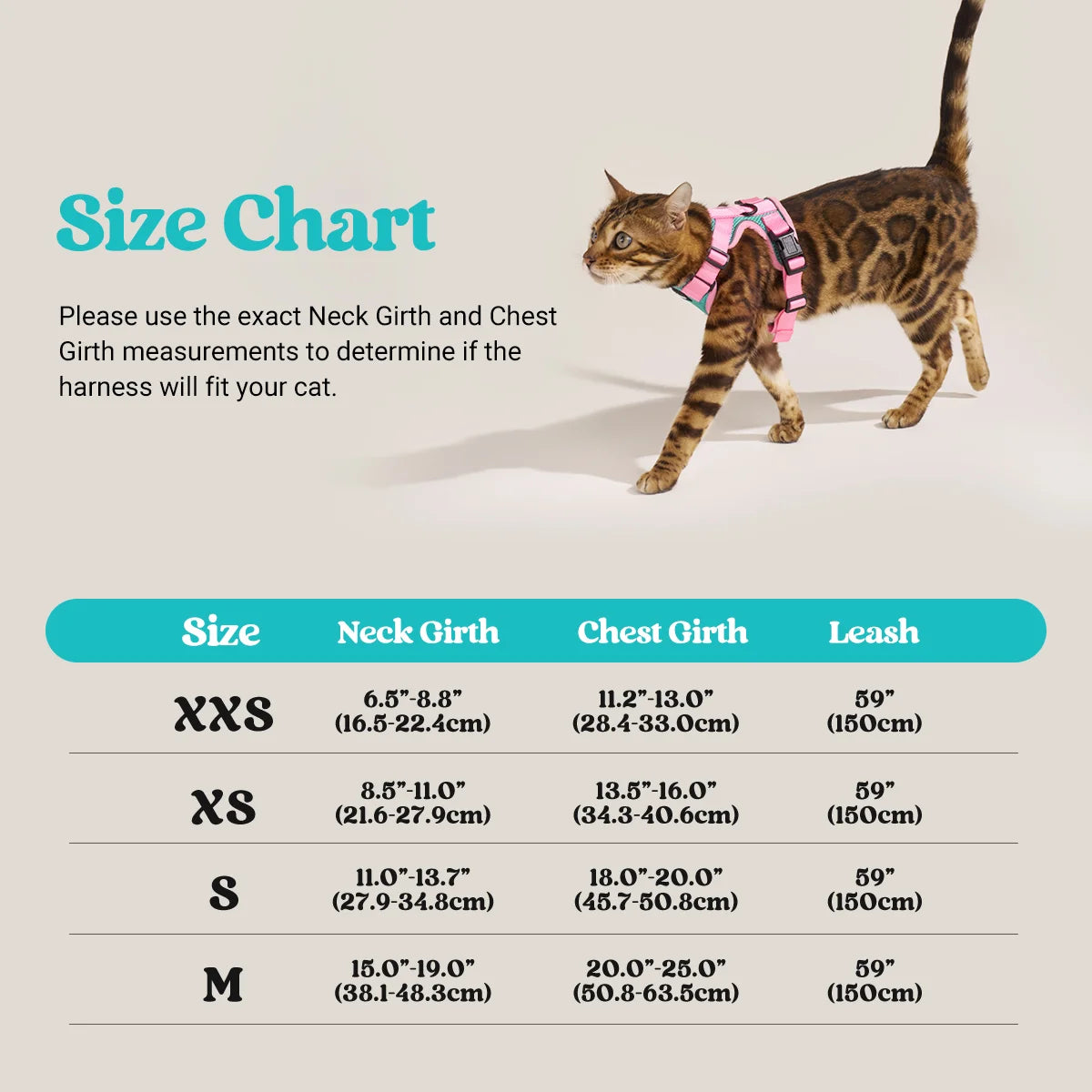Neck Girth: 9.4'' - 9.8'' | Chest Girth: 12.2''-14.0'' | Leash: 59''
