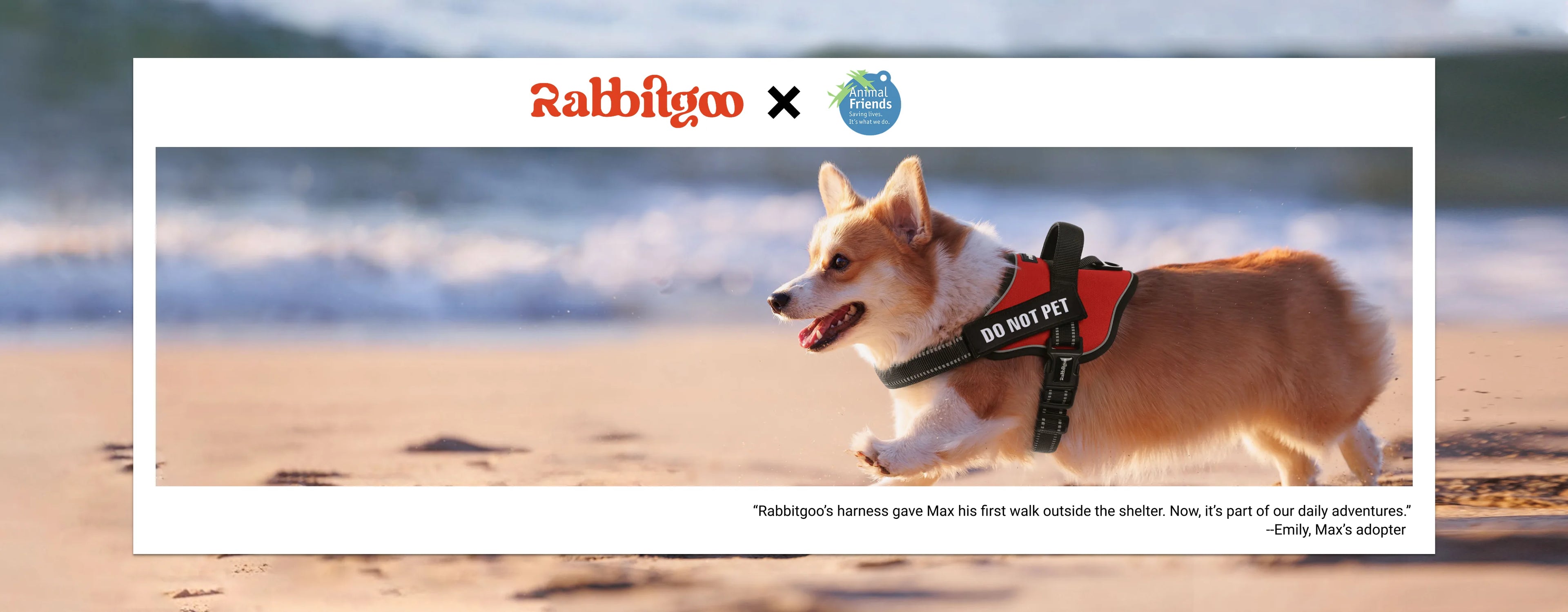 At Rabbitgoo, we believe every pet deserves safety, care, and a chance to thrive. That’s why supporting animal rescue is core to who we are. We’re proud to maintain ongoing partnerships with local shelters and rescue organizations . Through sustained donations of premium food, essential supplies, veterinary funds and adoption event sponsorships, we help provide critical resources for animals in need. This commitment is our long-term promise to building a more compassionate world for pets and the people who love them. Learn more about how we give back.At Rabbitgoo, we believe every pet deserves safety, care, and a chance to thrive. That’s why supporting animal rescue is core to who we are. We’re proud to maintain ongoing partnerships with local shelters and rescue organizations . Through sustained donations of premium food, essential supplies, veterinary funds and adoption event sponsorships, we help provide critical resources for animals in need. This commitment is our long-term promise to building a more compassionate world for pets and the people who love them. Learn more about how we give back.