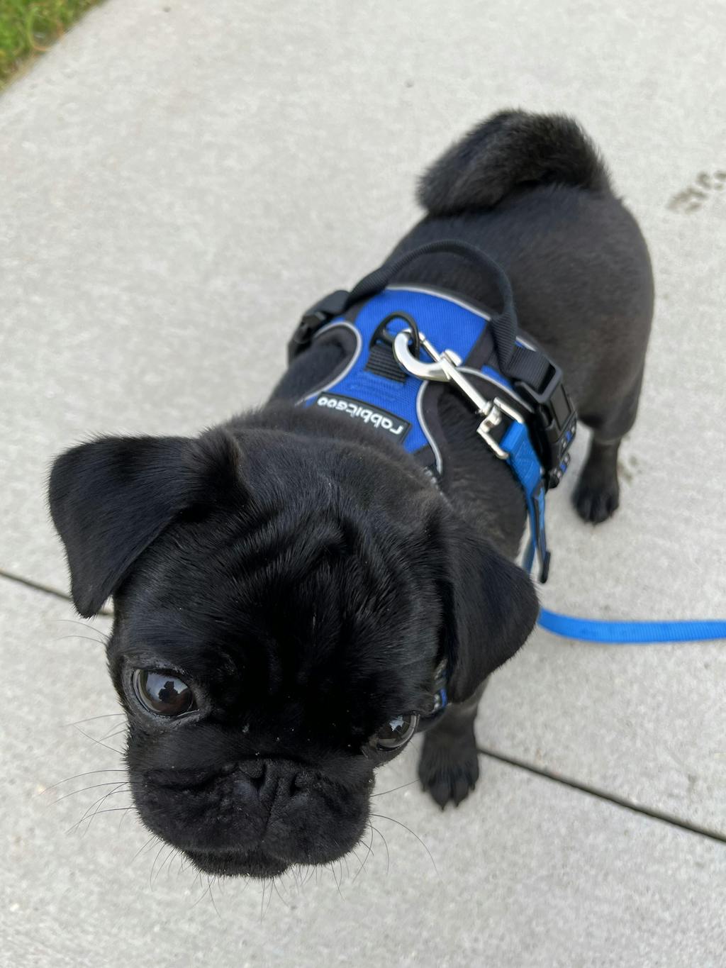 I have 4 month old pug puppy. I’ve been struggling to find a harness that fits him. My neighbor has a pug and uses the Rabbittgoo harness. She highly recommended it. I ordered it and got it quickly. What an awesome harness. It fits my 8 pound pug so well. He wears it and we are able to take short walks. Wonderful product.